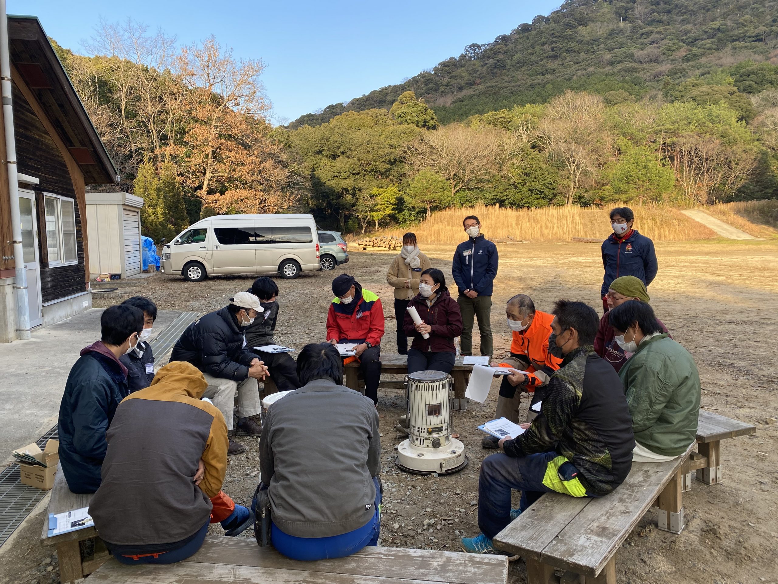 - 気温が低く肌寒く暖房が必要な年末の伐採作業で忙しい時期に、研修生の皆さんにお集まり頂き開催しました。